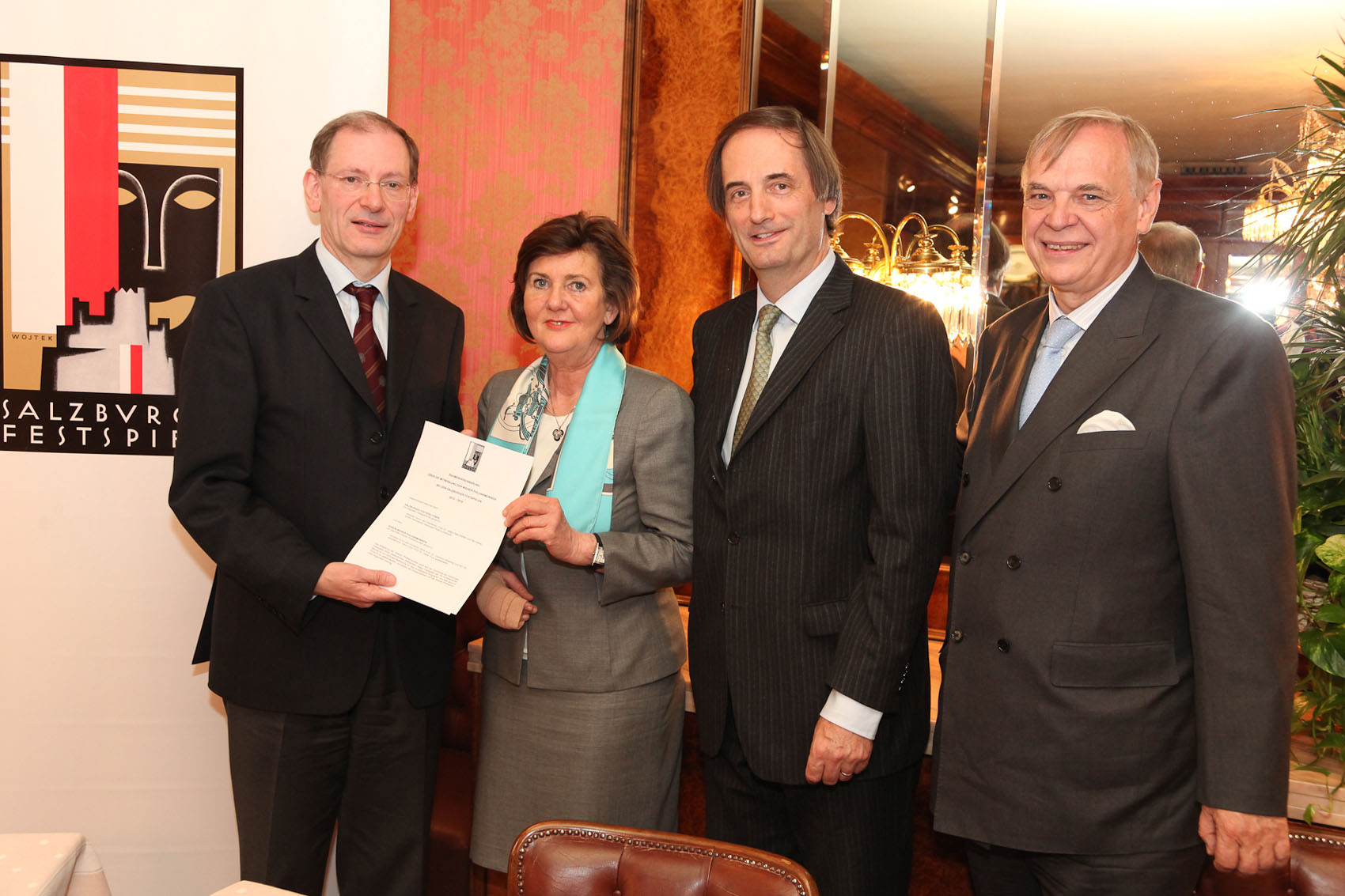 „Die Wiener Philharmoniker sind seit Beginn der Festspiele das künstlerische Herz der Salzburger Festspiele. Ohne sie gäbe es zwar Festspiele in Salzburg aber keine Salzburger Festspiele“ betont Festspielpräsidentin Dr. Helga Rabl-Stadler anlässlich der Unterzeichnung einer „neuen Rahmenvereinbarung“  über die Mitwirkung der Wiener Philharmoniker bei den Salzburger Festspielen 2012 – 2016.