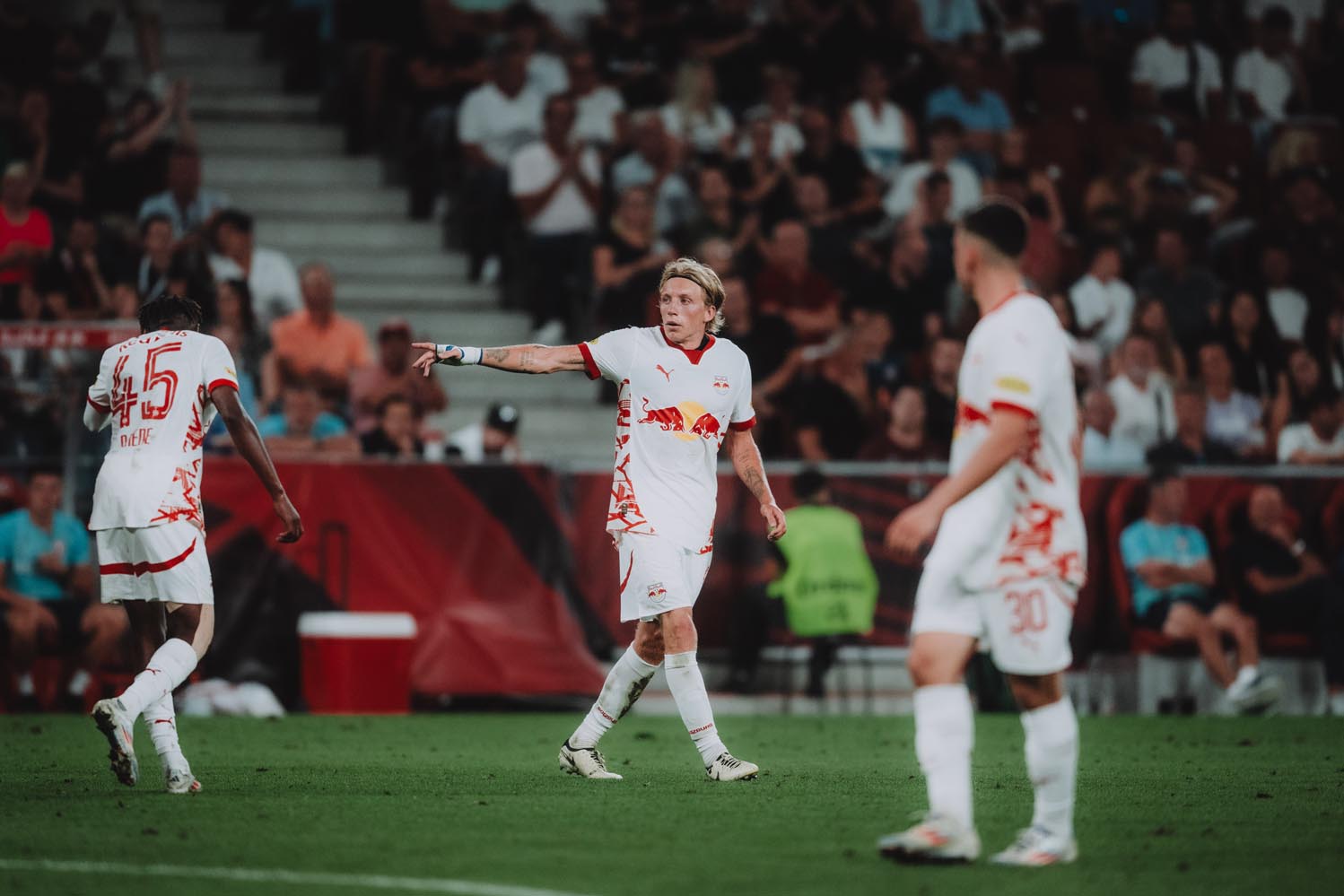 Erfolgreicher Start in die Qualifikation zur Champions League für Salzburgs Rote Bullen: Dank eines Doppelpacks von Maurits Kjaergaard holt Vize-Meister Salzburg einen verdienten 2:1-Heimsieg. Schmerzhaft allerdings der Anschlusstreffer – nach einer souveränen 2:0 Führung - der Gäste durch Michel Vlap (90.). Damit wird die entscheidende Auswärtspartie am kommenden Dienstag noch einmal zur Zitterpartie um den erhofften Einzug in die Königsklasse des europäischen Clubfußballs.